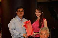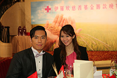 | 籌款晚會的司儀何基佑(左)及協助拍賣的模特兒 |